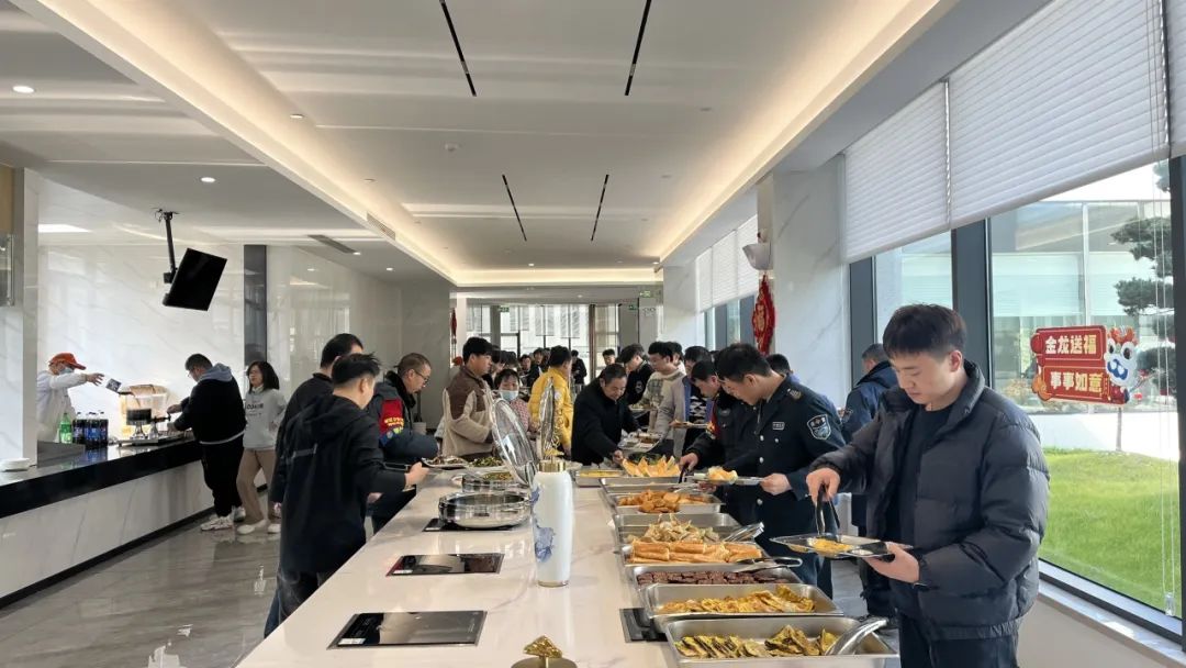 龙年春节期间,公司食堂全力做好餐饮后勤保障工作,满足留守员工饮食需求,无论是坚守岗位的值班人员还是留厂过年的留守人员,都能在公司食堂吃上温暖可口、丰富多样的饭菜,共同度过一个平安喜庆的大年。